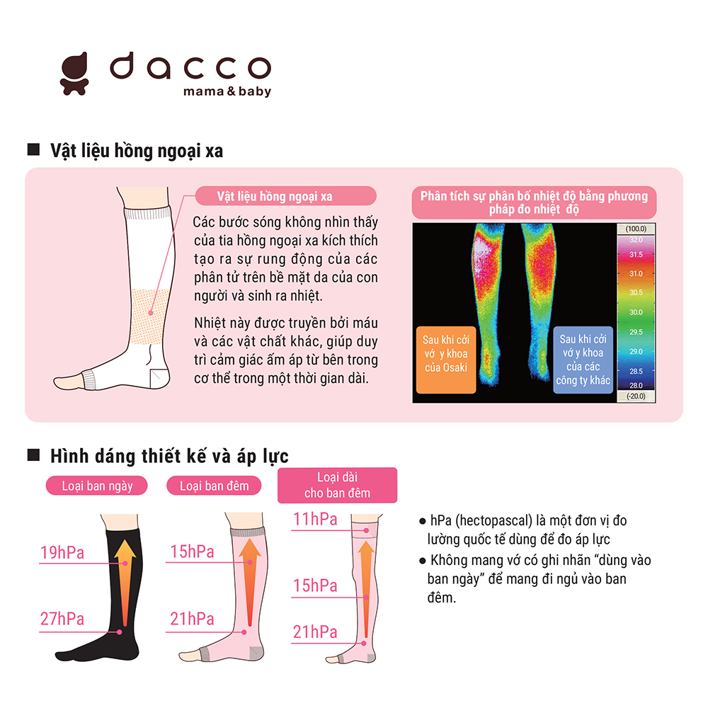 • Vớ y khoa dành cho sản phụ giúp làm giảm tình trạng sưng phù chi dưới trong thời kỳ thai sản bằng cách làm ấm mắt cá chân và tạo áp lực phân đoạn lên chân.